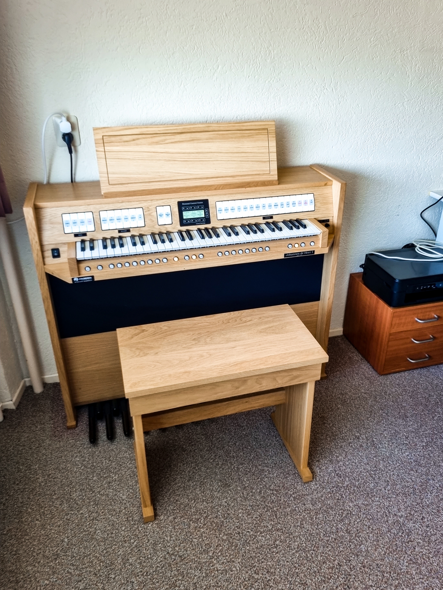 Dit model kan worden geleverd in vele verschillende kleuren. Blank eiken en donker eiker zijn de standaard kleuren en worden geleverd voor de geadverteerde prijs. Mocht u uw orgel geleverd willen krijgen in een andere kleur, is dit mogelijk voor een meerprijs van € 280,-. Bekijk hier het kleurenoverzicht.