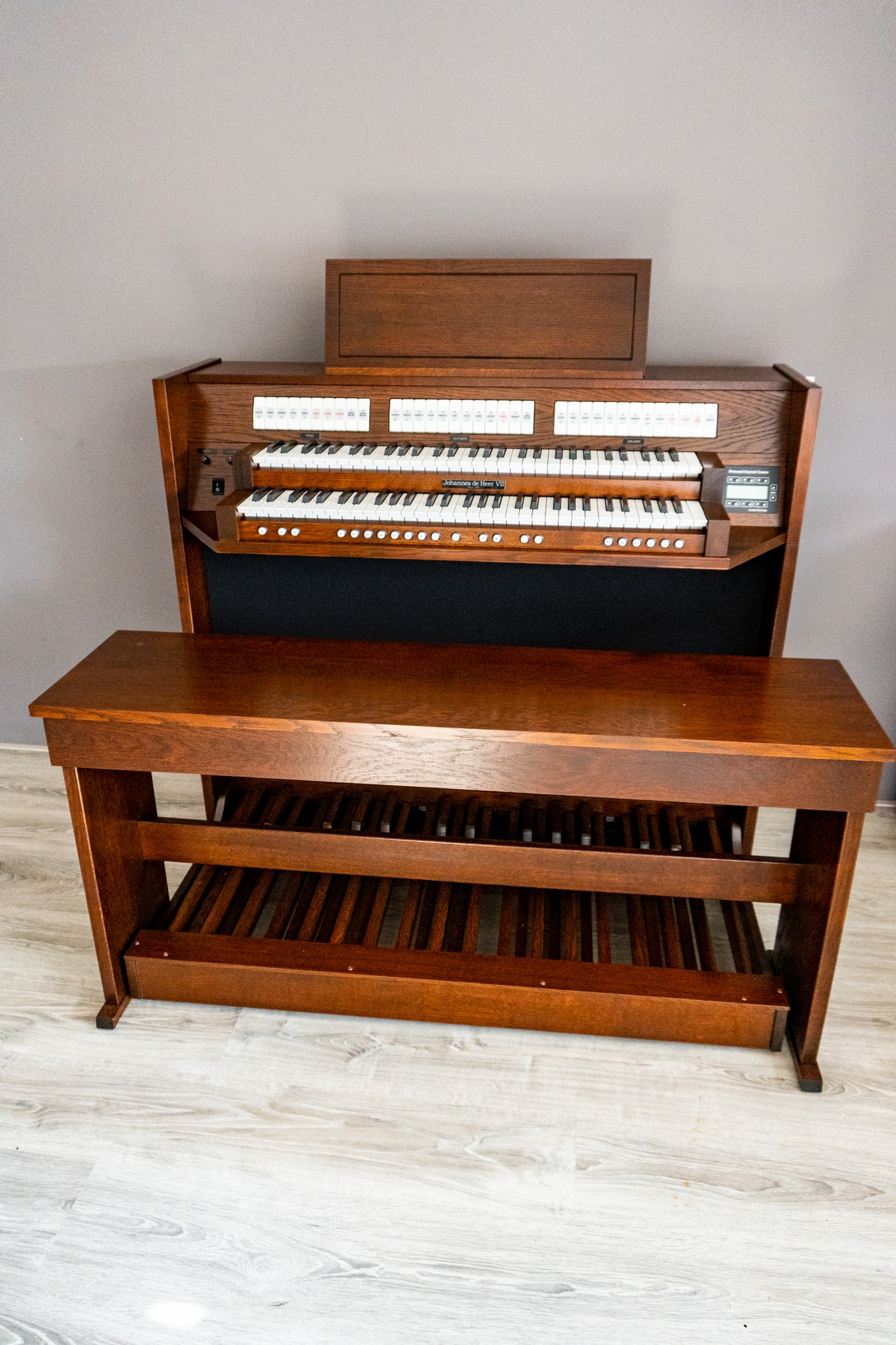 Het nieuwe Johannes de Heer VII orgel is een zeer compleet maar betaalbaar gezinsorgel maar ook uiterst geschikt voor de professionele organist. Met de lancering van dit spectaculaire orgel wordt er een nieuwe dimensie gegeven aan de verhouding tussen kwaliteit en prijs. De basis van het orgel bestaat uit een solide meubel gemaakt van massief hout. In het meubel is een nieuw en krachtig speakersysteem geïnstalleerd waardoor de unieke klanken prachtig weergegeven kunnen worden. Door de houten zwelpedalen die worden verlicht door ledverlichting krijgt het orgel een chique uitstraling. Het orgel is perfect geschikt voor gebruik als gezinsorgel voor in uw huiskamer, maar zal ook uitstekend functioneren bij gebruik in kerken of in zalen. Naast de standaard uitvoering is de Johannes de Heer VII ook leverbaar in twee speciale stijlen; Landelijk en Industrieel.