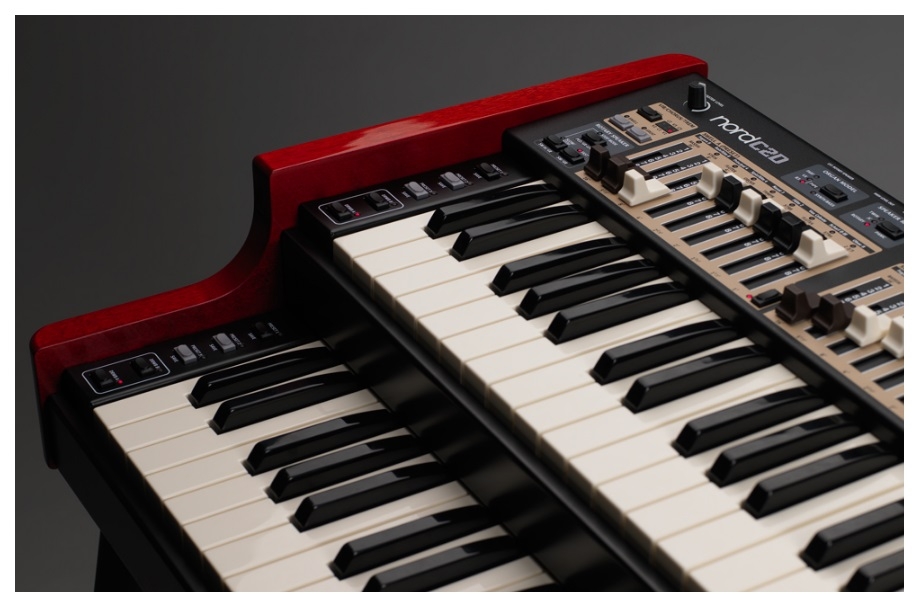 De Nord C2D is een portable orgel met ongekende mogelijkheden. Gekenmerkt als de Zweedse reproductie van de Hammond B3, beschikt dit orgel over zeer realistische orgelsimulaties. Bijbehorende versterkersimulaties en rotary karakteristieken zijn ook allen aanwezig. Twee sets fysieke drawbars per klavier zorgt voor optimale controlemogelijkheden. De C2D is een veelzijdig instrument, zo heeft u ook een prachtig gesampled pijporgelklank in Barokstijl tot de beschikking. Wat uiteraard niet mag ontbreken is een prettig klavier met een fijn toucher en daarom heeft Nord gebruik gemaakt van twee gerenommeerde Waterfall klavieren. Deze licht spelende klavieren reageren zeer accuraat en zorgen daarmee voor authentiek speelgevoel van een origineel instrument.